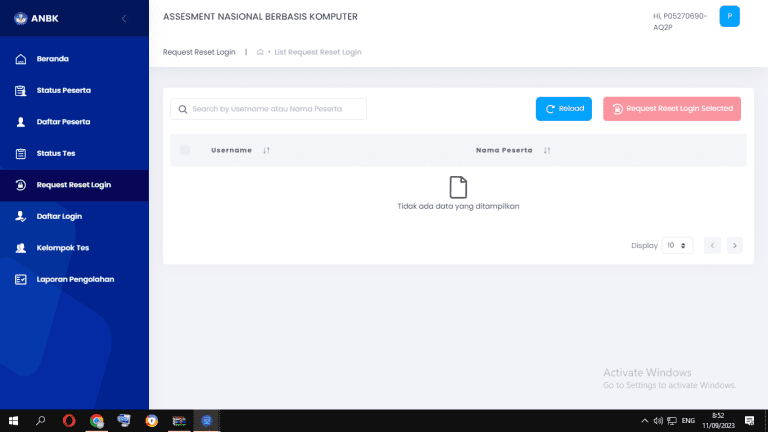9. apabila ada kesalahan dan meminta reload reset login minta ke proktor supaya di reset di menu reset login, centang anaknya kemudian request reset login
